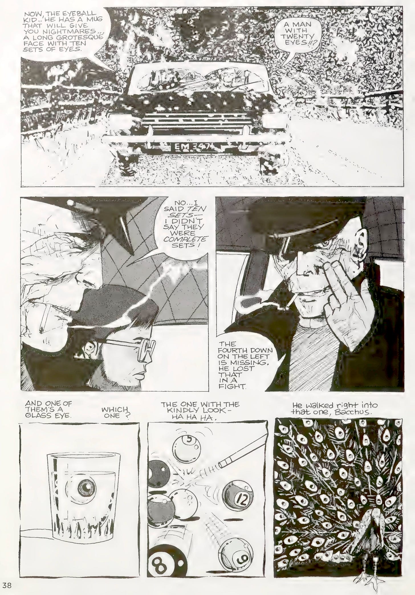 Campbell goes on to note he “had to find a myth to explain a grotesque character with multiple eyes.” Yes, the original Eyeball Kid was not one giant eye, like Tom’s, but a person with a bunch of eyes. Here’s the Eyeball Kid’s introduction on paper: